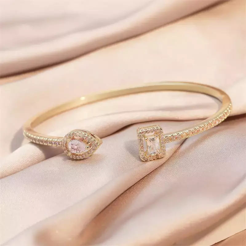 Os DuoLuz Cuff Bangles são a combinação perfeita de luxo moderno e elegância atemporal. Com um design geométrico cativante, esta peça apresenta duas formas contrastantes — uma gota e um retângulo — ambas cravejadas com brilhantes pedras de zircônia cúbica, criando uma harmonia visual que simboliza equilíbrio: força e delicadeza, luz e sombra.