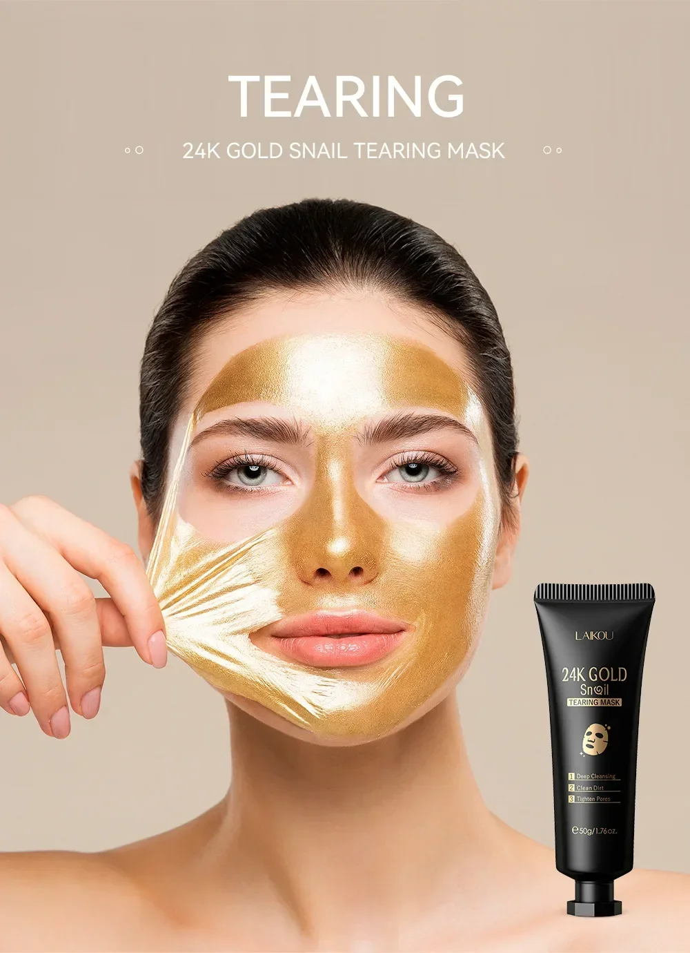 Laikou Peel Off Máscara de Colágeno de Caracol Dourado 24K Reduz Cravos Limpeza Profunda Controle de Óleo Encolher Pores Hidratante Pele Facial Suave